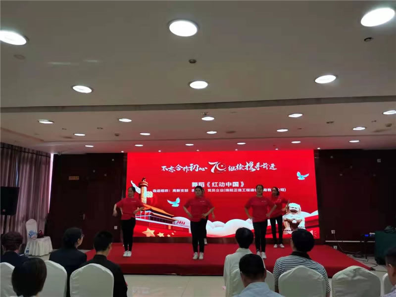 【綿陽正信?造價部消息】為慶祝祖國母親70周年生日,綿陽正信公司自發(fā)組織員工演練舞蹈《紅動中國》,于2019年9月25日參加致公黨綿陽市工委組織的“慶祝中華人民共和國成立70周年文藝匯演”。整臺演出高潮迭起,精彩不斷。演員們用悅耳的歌聲、優(yōu)美的舞姿、飽滿的熱情和真摯的感情,表達出對祖國的無限熱愛和對祖國母親的美好祝福。