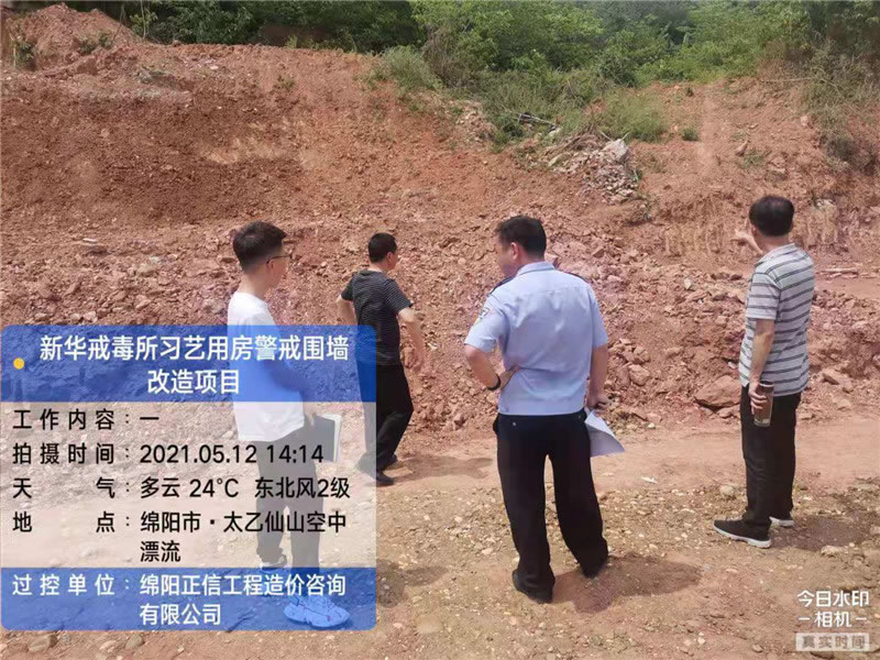 【綿陽正信·造價部消息】受綿陽市新華戒毒所委托,我司為該單位習藝用房警戒圍墻改造項目進行過程控制。2021年5月12日,我司該項目的專業(yè)技術(shù)人員配合項目建設單位在現(xiàn)場探討深化改進施工方案。