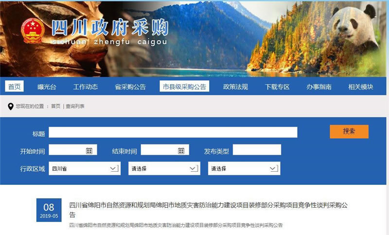 【綿陽正信·招標(biāo)部消息】受綿陽市自然資源和規(guī)劃局委托由我公司招標(biāo)代理部代理的“綿陽市地質(zhì)災(zāi)害防治能力建設(shè)項(xiàng)目裝修部分采購項(xiàng)目”通過市財政部門的審批,與與采購單位溝通共同編制的招標(biāo)文件,已經(jīng)掛網(wǎng)公示招標(biāo),供應(yīng)商也陸續(xù)按照法律法規(guī)到我公司進(jìn)行報名投標(biāo),該項(xiàng)目將于2019年5月13日在我公司進(jìn)行開標(biāo)。我單位也在積極準(zhǔn)備該項(xiàng)目開標(biāo)的相關(guān)事宜。