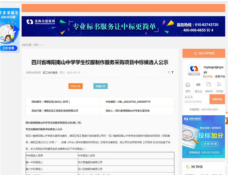 【綿陽正信·招標部消息】我公司受四川省綿陽南山中學(xué) 四川省綿陽南山中學(xué)家長委員會委托,對四川省綿陽南山中學(xué)公開征集學(xué)生校服設(shè)計基礎(chǔ)款式采購項目擬采用公開招標方式進行采購,本項目于2021年06月27日在中國采購與招標網(wǎng)掛網(wǎng)公示,于2021年07月22日14:00在綿陽科創(chuàng)區(qū)劍南路西段388號長興星城3棟2樓11號順利開標。